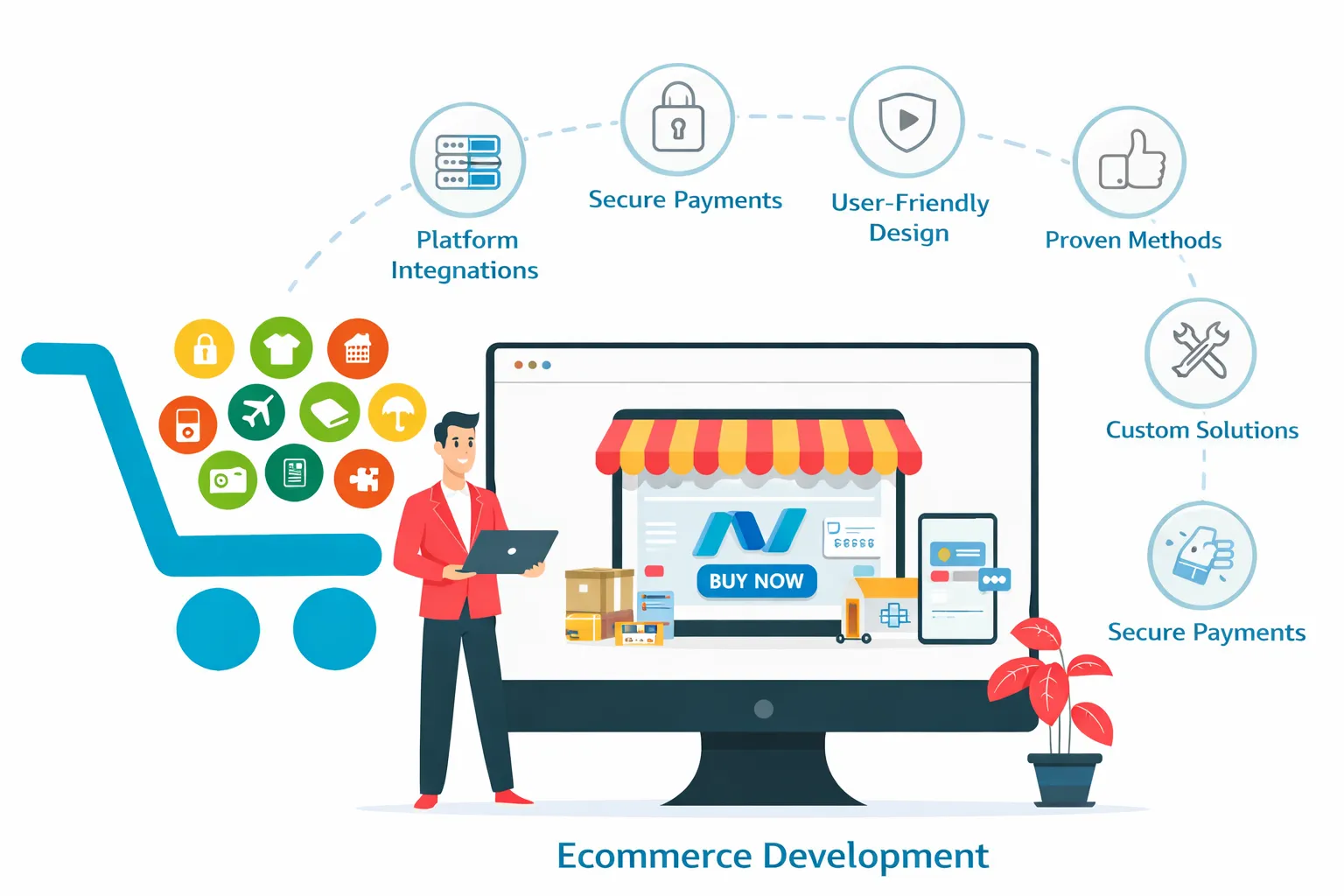 Build online store, payment gateways, logistics support and many more with us. We are leading eCommerce Solutions company in India.